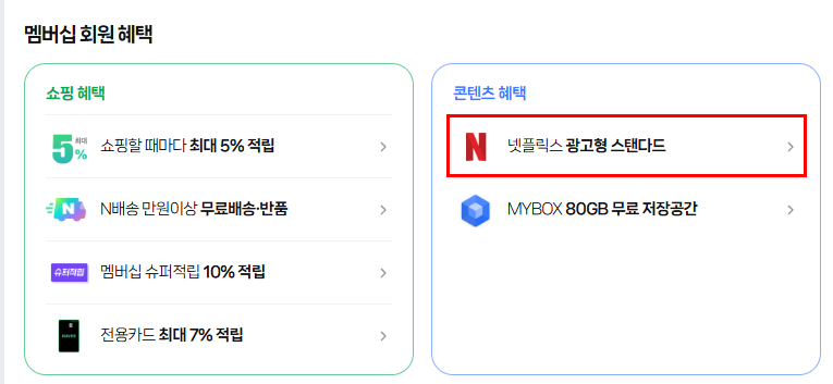 네이버 멤버쉽 가입 후 콘텐츠 혜택으로 넷플릭스 광고형 스탠다드를 선택하시면 무료로 이용 하실 수 있습니다.