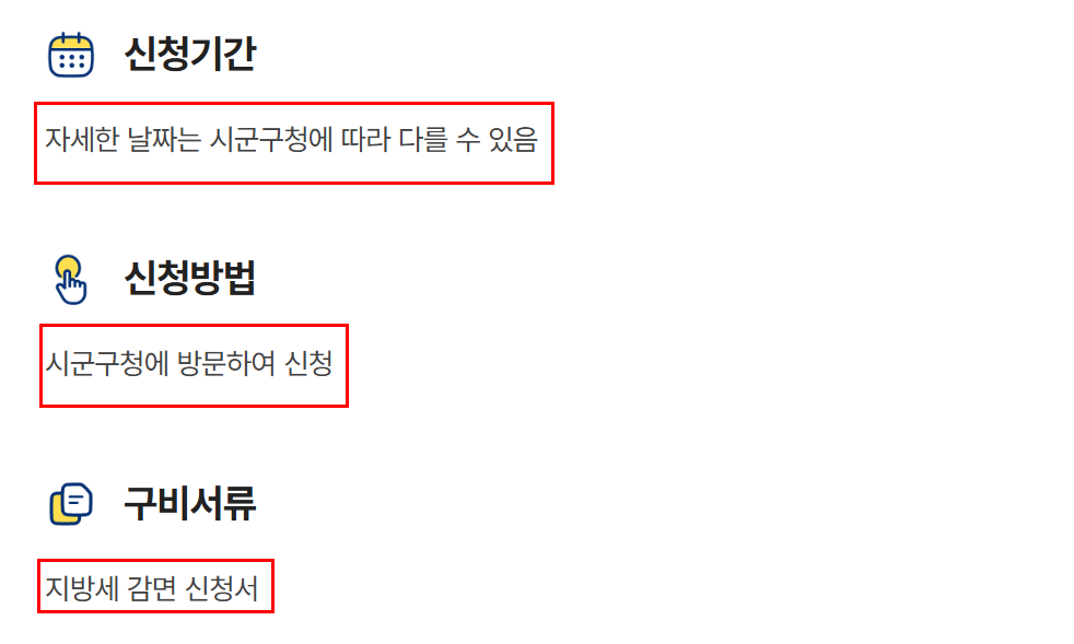 - 시·군·구청 세무과 방문 또는 온라인 신청 (지역별 상이)