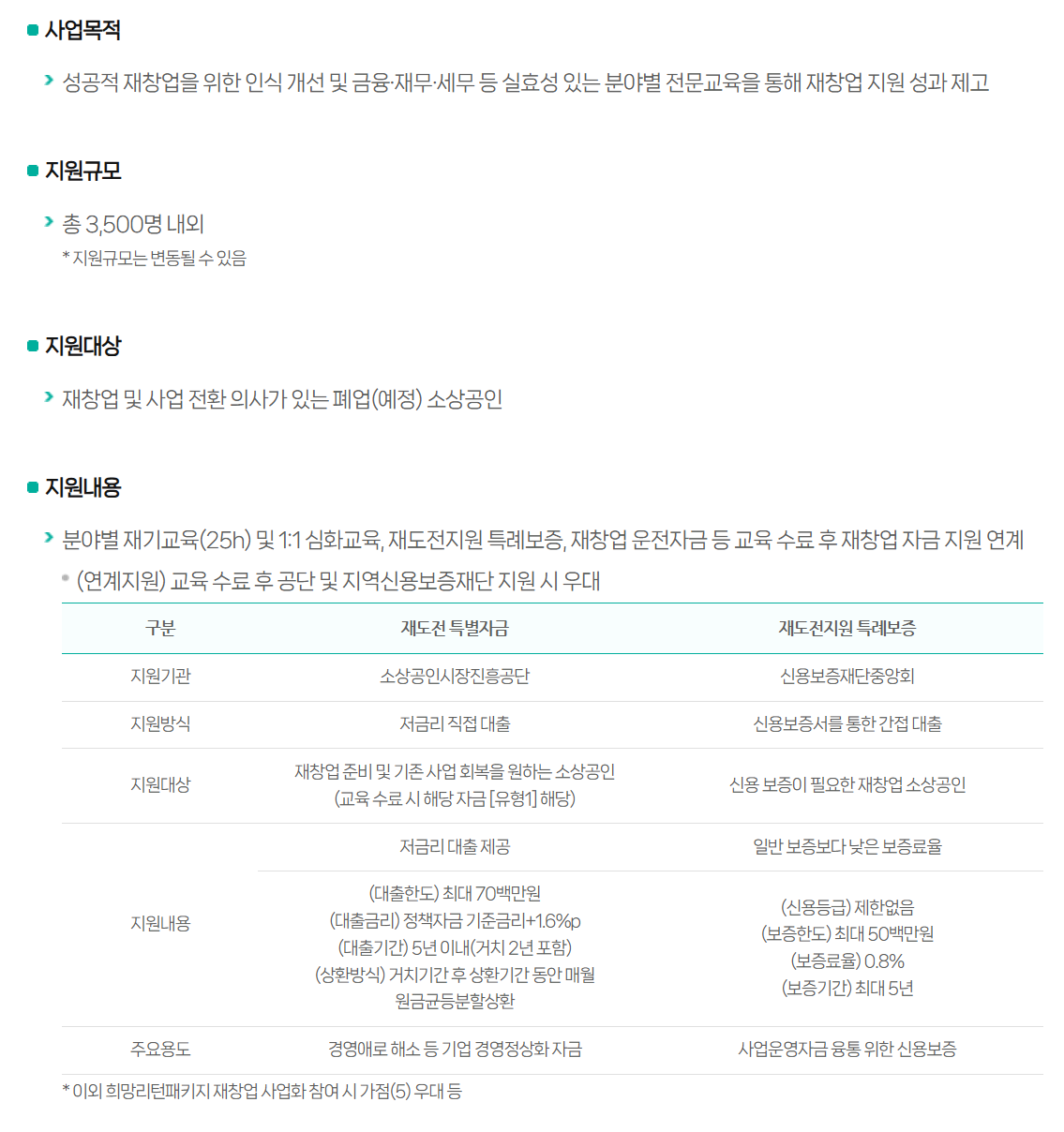 | 연계 혜택 | 재도전자금 대출 or 보증 지원 |