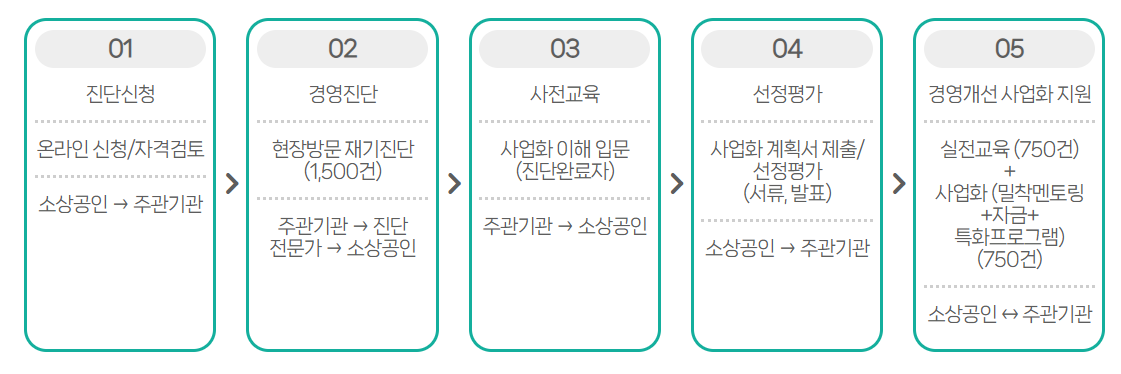 | 핵심 절차 | 신청 → 진단 → 교육 → 평가 → 자금 |